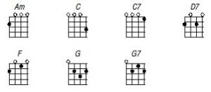 Find the chords & lyrics for ‘Santa Claus is Coming to Town’ here There are a few chords, but with a little practise it is easy to play. The chords are C, F, G7, Am, C7, G & D7.